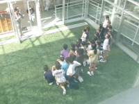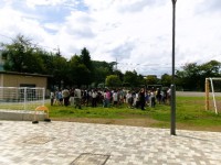 今日の4時間目の終わりごろ、6年生が校庭に集合していました。暑い最中に何かな、と思って様子を聞くと、卒業アルバムの集合写真を撮るとのことでした。校舎の方を見ると3階の教室にカメラマンさんがスタンバイしています。高いところから、全員が映るように並び方を上手に調整して集合写真を撮っていました。