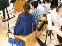 2学期になって、音楽室が少しリニューアルしました。1学期までは、新校舎と一緒に設置されていた机と椅子を使っていました。とても素敵な机と椅子なのですが、小学生には少々高さがありました。高学年の子には適していますが、3年生の子には少々高かった様子でした。座っていると足が浮いている子もいました。そこで、多目的室にある多摩産材で作られた椅子を使って見ることにしました。今までの椅子よりは若干低く、図工室でも使っているもと同じです。椅子にはものを入れられる工夫もあり、「音楽袋」を入れることができます。そして、器楽演奏のときは譜面台を使うことにしました。教科書や楽譜は譜面台にのせて演奏します。その譜面台は背面部分に下げることができ、すぐに使うことができます。今のところ具合が良さそうなので、この形で音楽室を使っていこうと考えています。