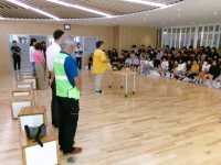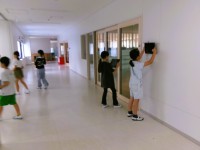 今日の避難訓練は、不審者対応の避難訓練です。学校に不審者が侵入したとしいう想定で訓練を実施しました。不審者が侵入したという放送が入ると、事前に決められた方法で、避難行動をします。ポイントは静かに素早く行動することです。侵入したという情報は、符丁をきめています。その符丁のときは不審者が侵入している、ということを訓練を通して改めて確認しました。
