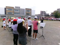 今朝は1回目の運動会全体練習がありました。入場行進、開会式、運動会の歌、大玉送りの並び順について練習しました。入場行進では、金管バンドのファンファーレで始まり、「木星」の演奏で入場します。今年は、5.6年生で演奏を行います。いつもより少ない編成なので、一人一人がしっかりと音を出しきる、という気持ちで演奏していました。開会式では、優勝杯の返還、選手宣誓など、6年生の実行委員が担当し、スローガン発表や得点の説明などは委員会で担当します。1年生は始めの言葉をがんばりました。
