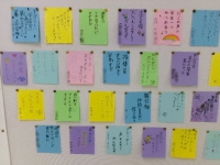 11月は「ふれあい月間」として、いじめや問題行動について考えたり、防止に向けた取り組みを重点的に行う月としています。二小では、その取り組みとして、普段から気持ちのよい言葉かけをしたり、相手のことを考えた話をしたりする「ふわふわ言葉」の取り組みを行っています。学校生活の中で、言われて嬉しかった言葉や周りで聞いていて心が温かくなったような言葉を集めていきます。教室内に掲示して、そんな素敵な言葉ほ共有したり、どんな言葉が素敵な言葉であるかを理解できるようにしたりしています。