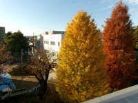 昨日、二小育成会の会合があって、冒頭の会長さんのお話の中に、この時期になるとかつては、イチョウの黄色が鮮やかになることを思い出します、というお話がありました。旧校舎のときには、二小の校庭に何本かの立派なイチョウの木があり、秋の日差しを受けて素敵な黄色に輝いていたことを思い出しました。下の左の写真がそのイチョウの様子です。