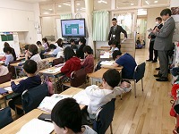 今日は学校にお客さんが来校しました。国立市の友好姉妹都市の連携を結んでいる北秋田市の学校の先生・教育委員会の方が来校されました。その中で、二小が取り組んでいる、デジタルを活用したこれからの学びの様子、子どもたちの意見表明権を活かした取り組み、高学年で行っている小学校教科担任制での学びの様子を見ていたただきました。また、「どの子も学びやすい学校」である二小校舎の施設も見ていただくことができました。