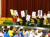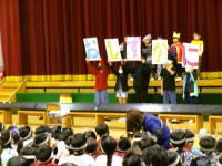 今日の集会は図書委員会が担当する図書集会でした。学校図書館に関すること、図書委員会のやっていることに関することについてクイズ形式で紹介する集会でした。
