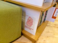 この表示を見付けて興味をもち、読んでみようと思った子もいるそうです。学校図書館のいろいろな所に掲示していますが、こびとなので、少し見えにくいところにあります。楽しい掲示をみて読書にも興味をもってくれるといいなと思います。