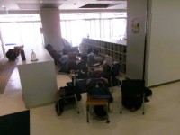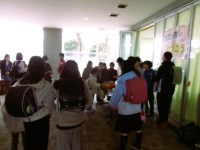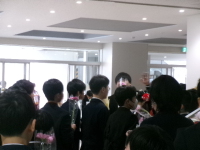 学校に来て、ピロティーのところで受付をして、小さなプレゼントをもらって終了です。今日は、何人かの子どもたちが、自発的に受付を手伝ってくれて、登校してきた新入生を迎えていました。