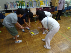 8月のお誕生会をしました。お楽しみゲームでは定番のドンジャンケンと、初めてやるクレーンゲームで盛り上がりました。チームごとに声を掛け合いながら、協力して取り組むことができました。
