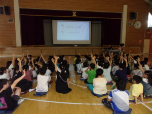 4年生は歯科講話があり、歯と口の健康について話を聞きました。どの子も真剣に話を聞き、質問コーナーでは「歯磨き粉は付けた方がいいのですか。」や「電動歯ブラシは本当にいいのですか。」など高学年らしい質問がたくさん飛び出し、すすんで学ぶことができました。