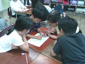 グループごとに地図を見ながら、どの順番でまわるかを話し合いました。