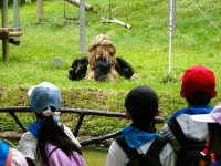 動物公園では、蝶々や蛍を見たり、キリン、チンパンジーの観察をしたりしてお弁当です。たっぷりゆっくり時間をとって、みんな仲良く過ごせていました。昼食後は、ゾウ、ライオン、チーター、バクなどを観察していきました。多摩動物公園は、上り下りがたくさんあるので、元気な2年生も最後の方は少し疲れ気味の様子でした。それでも、またモノレール・電車と乗り継ぎ、国立駅からも歩いて学校に無事到着できました。