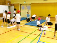 授業の中ではいろいろなゲームをするのですが、英語で説明あり、ゲームの中でも英語を聞いたり、子どもたちも知っている英語を使ったりします。ゲームをしていく中で、たくさんの英語を聞き、英語を使っていました。