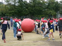 大玉送りは、練習を重ねるにつれて上手に運べるようになり、今日が一番うまくできました。担当の先生や実行委員の児童が、上手に運ぶためのコツをつたえていましたが、それをよく聞いて実戦の中で活かしていました。