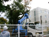 今日、一部の桜の樹の剪定を行いました。東側にある桜の樹の中に、一部大きな枝が枯れてているものがありました。近隣の方に教えていただき、すぐに対応していただきました。