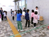 毎朝、校舎の東側と西側のところに立って、募金に協力してくれる子どもから、募金の入った封筒を受け取ります。また、協力の呼びかけをしていくことで、まだ募金をしていない子への働きかけを行いました。