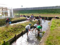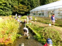 川の中に入って、水の温度を実感したり、水の清らかさや生き物について、実体験を通して学んでいきます。学校からは少し距離はありますが、3年生は頑張って行き帰りの道を歩き通しました。川の生き物は、ヌマエビやザリガニ、オイカワやドジョウ、ホトケドジョウなどを観察することができました。オニヤンマのヤゴも見ることができました。今日見付けたこと気付いたことをうまくまとめられるといいな、と思います。