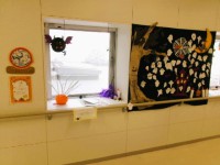 今日はハロウィンの日。子どもたちも、ハロウィンにちなんだ服を着て登校する子もいました。特に仮装などをするわけではないですが、校内にもハロウィンの装飾があり、子どもたちを楽しませています。