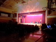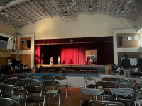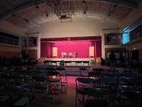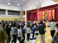今日の保護者参観日は予想外のトラブルが起きました。プログラム1番は1年生の発表ですが、保護者の方も来場し、あとは開始のブザーを待つだけになったとき、体育館の電気系統の全てが使えなくなりました。教職員総出で復旧に向けて取り組みました。また、関係機関等に連絡し対応策を教えてもらったり、学校に来てくれるように要請したりしました。45分ほど対応しましたが、復旧できず、電気業者の方が来る時間も確定できないため、学芸会をその場で中止することとしました。