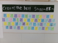 6年生の教室前の廊下には、6年生としての取り組みの意気込みや思いがメッセージとして掲示されています。共通のテーマは「Create the best Stage ~輝~」になっています。学芸会として初めて取り組む一人一人の思いがこのメッセージに表れています。最高の舞台をみんなで創ろう!という意気込みが伝わってきます。6年生だけでなく、どの学年も最高の舞台を目指して挑戦していくことがとても素晴らしいと思います。