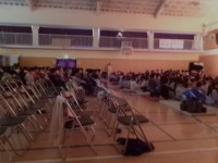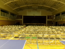 体育館に来場していただいた保護者の方やご来賓の皆様には、冷静に対応していただき本当に助かりました。保護者の方で電気設備に詳しい方には復旧作業を手伝っていただきました。それても復旧できず、大変申し訳なかったのですが、12月に延期する旨を伝え、理解していただきました。すぐーる配信でその旨お伝えしましたが、学校に来ていただいた保護者の皆様には、事情を説明して理解していただきました。延期の詳細は保護者の皆様に別途お伝えいたします。