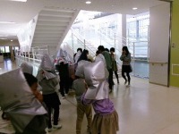 今日の避難訓練は、火災が起きた想定での訓練でした。火災が起きると火の手が上がるより前に、煙がたくさんでることがあります。新しい校舎では、燃えにくい素材がたくんさあるぶん、煙がたくさんでることが想定されます。