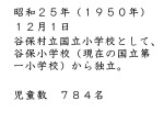 国立第二小学校は、1950(昭和25)年の12月1日に開校しました。谷保村立国立小学校として、谷保村立谷保小学校(現在の一小)から独立する形での開校です。そのときの児童数は784名。今日現在で二小は543名なのて、200名以上多い児童数です。学年が2~3多いようなイメージです。開校当時は教室数が12教室程度の木造校舎でした。ですから、かなり大勢の子どもたちが1つの教室で学んでいたことになります。