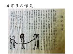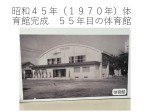 創立10周年の記念誌から、当時の様子について書かれている作文を紹介しました。当時の4年生が書いた「私の学校」という作文です。今日の朝会は4年1組中継していたので、4年1組の子は同じ4年生が書いた作文を興味深く聞いている様子でした。10周年のときには木造の東校舎と2階建ての西校舎でしたが、その後1963(昭和38)年に昨年まで使っていた鉄筋校舎が建ちました。その後、1970(昭和45)年に体育館が完成しました。現在も使っている体育館です。ですから、体育館は今年で55年目の年になります。