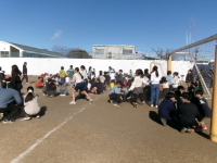 完成したにーだんごを外でみんな一緒に味わいました。たくさん作ったので、お代わりがたくさんでき、お腹も気持ちも満腹になりました。