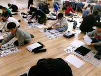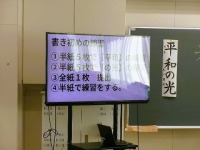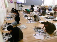 今週から12月となりました。昔の言い方では「師走」です。師走の「師」はお坊さんの方で、法事が多い時期だとか、「年果ツル」を縮めて「しわす」だとかの説がありますが、2学期も残りが数えられる時期になり、気忙しいじきになっています。一月後は正月なので、習字の授業では書き初めの練習が始まりました。今日は5年生が練習していました。お手本をよく見てね集中して一画ずつ丁寧に練習していました。