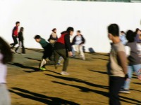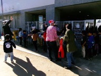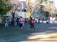 スタートの合図で子どもたちは一斉に逃げ出します。先生も懸命に追いかけます。捕まると、くじ引きをして、当たれば逃げられます。外れると、委員会の担当児童とじゃんけんをして、勝てば逃げられます。
