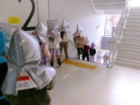 今日の訓練では、火災で煙が出ることを想定し、その対応をについてよく考えた行動がたくさん見られました。例えば、ハンカチやマスクで口や鼻を覆うこと、低い姿勢で進んていくことなどです。火事になったとき同じような行動がとれるようにしていきたいと思います。また、その時にも慌てないで冷静な行動ができるようにしいてきたいと思います。