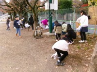 今朝は北風が強く、今日の当番の3年生は北風に立ち向かいながら、一生けんめいに落ち葉や落ちているごみを拾っていました。来週は2年生、1年生が行います。
