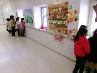 今回の掲示で1番人気は「はまぐり占い」です。本物のはまぐりの貝殻をつかって占いを作っていただきました。はまぐりを返すと今日の運勢が分かります。子どもたは「大吉がでたよ」「吉がでた」と嬉しそうにはまぐりをかえしています。そのほかにもたくさん素敵な海の生き物たちがいて、興味津々の様子で見に来ています。素敵なディスプレーを掲示していただきありがとうございます。