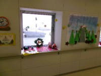 国立では、今大学通りや富士見通などにクリスマスのイルミネーションがきれいに飾られていますが、二小の図書室前の掲示もとても素敵に飾られています。PTAのおはなしの会の皆さんが飾ってくれています。クリスマスの飾りだけでなく、今日の運勢を占う飾りや、子どもたちが参加できる飾りがあって、休み時間になると子どもたちが集まって飾りの周りで楽しんでいる様子です。