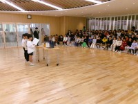 今日の集会は図書委員会が担当する図書集会でした。学校図書館に関すること、図書委員会のやっていることに関することについてクイズ形式で紹介する集会でした。