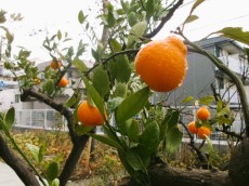 校庭の西側に1本の柿の木があります。ただし、渋柿の木です。今年もたくさん実りました。渋柿なのでそのままでは食べられません。プラタナスの学級で干柿作りに挑戦する学級もありますが、たいていそのままで、1月を過ぎると自然に干柿のような状態になり、そのとたんたくさんの野鳥が柿の木に来て、実を食べています。