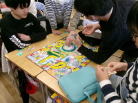 2時間目は5年生が校内を案内して周る、学校探検スタンプラリーを行い、3時間目は1年生が園児をお客さんにしたお店屋さんのお楽しみ会を行いました。