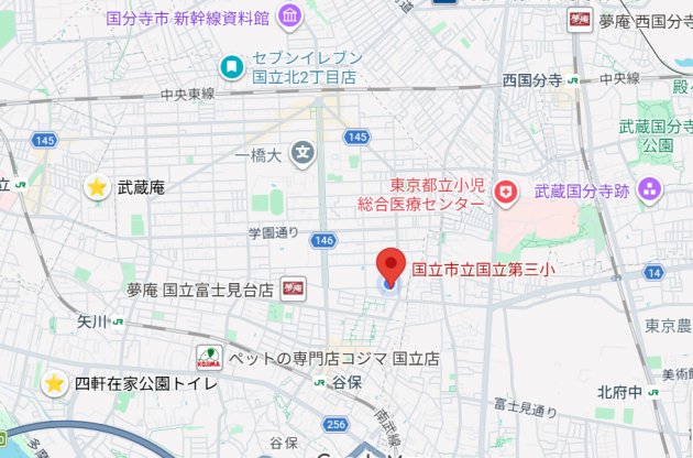 〇JR国立駅より ・徒歩21分 ・立川バス(国15-2)「第三小学校」で下車、停留所より徒歩5分 ・京王バス(国11)(国17)(国18)「国立高校前」で下車、停留所より徒歩9分〇JP谷保駅より ・徒歩15分 ・京王バス(国17)(国18)「国立高校前」で下車、停留所より徒歩9分